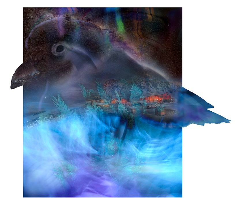 «Cormorán Antártico – cielos que conectan» – «Paloma Antartica con aurora en la noche y vegetacion del pasado»